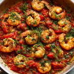 Dinner doesn’t get easier—or more delicious—than this garlicky shrimp tossed in a fresh tomato sauce and sprinkled with fragrant dill. It’s light, vibrant, and on the table in just 15 minutes. Perfect with crusty bread, rice, or straight from the skillet!