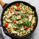 This recipe? It’s got roots. Picture me, age 22, in my first tiny apartment kitchen. I’d just finished a double shift at the restaurant where I trained, starving but too exhausted to cook. My fridge held three random things: leftover rotisserie chicken, half a tub of red pesto from a pasta experiment, and a bag of cauliflower rice I’d bought on a whim. Challenge accepted. I threw ’em in a skillet with whatever else looked alive in the veggie drawer (enter: sad tomatoes and wilting arugula). Ten minutes later—BAM—creamy, herby magic happened. My roommate walked in, sniffed the air, and said, “You made that?” with total disbelief. That moment of triumph—turning scraps into something legit delicious—stuck with me. Now, every time I make this, I remember that cooking isn’t about perfection. It’s about trusting your gut, playing with flavors, and creating joy from chaos. Even on the busiest nights.