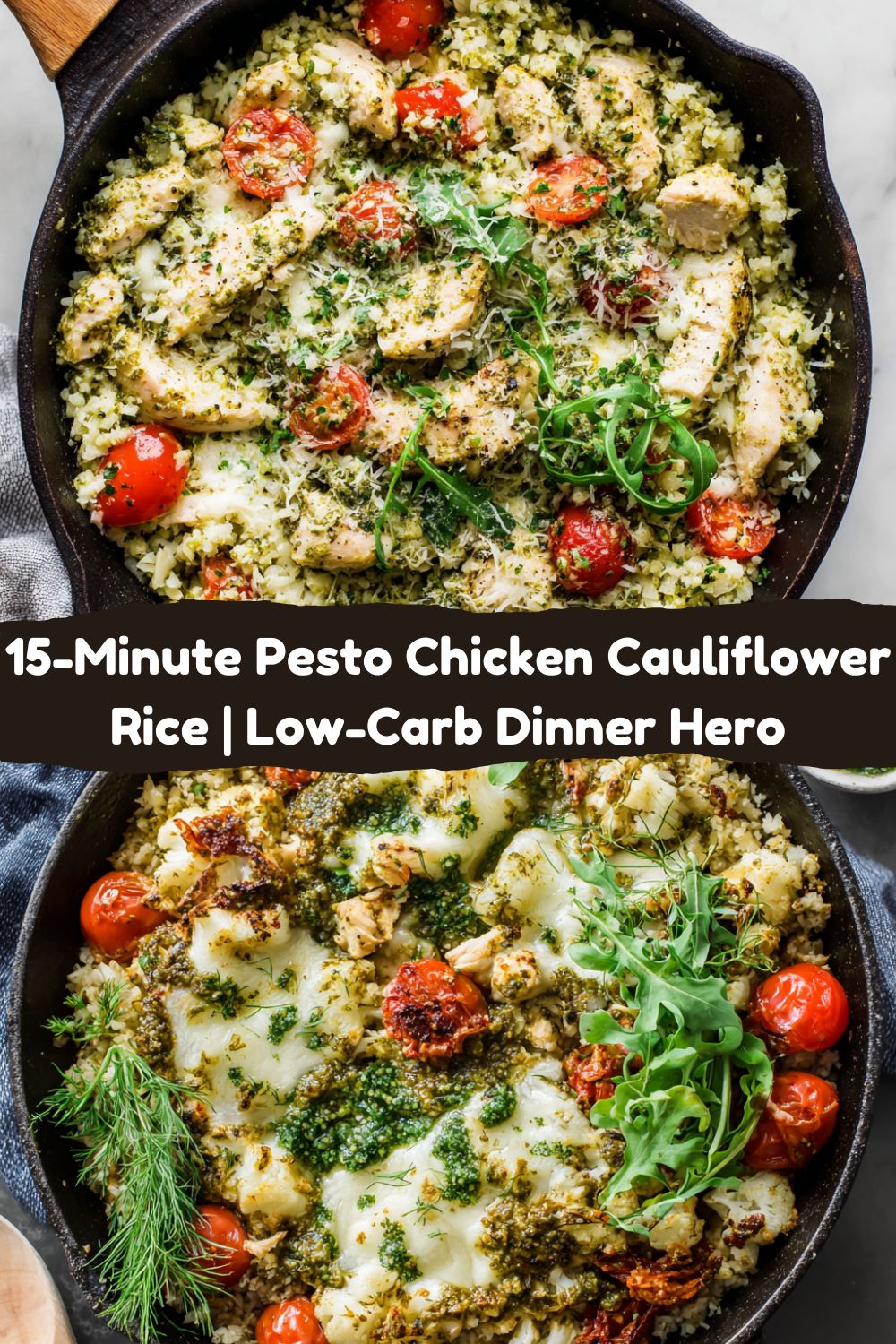 Let’s call it what it is: 15-Minute Pesto Chicken Cauliflower Rice is your low-carb dinner BFF—the kind that shows up when you’re tired, hungry, and this close to ordering takeout. But instead of cardboard pizza, you get something warm, creamy, herby, and shockingly satisfying—all made with stuff you already have hanging around.