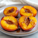 Slide those warm peaches into shallow bowls – cut side up to catch all the syrupy goodness. Non-negotiable: Crown them with vanilla ice cream. The hot-cold contrast is LIFE. For extra pizzazz, sprinkle toasted pecans or a drizzle of honey. Serving guests? Layer Greek yogurt and granola under the peaches for a “fancy brunch” vibe. Pro tip: Hand everyone spoons immediately. Trust me, silence will follow.