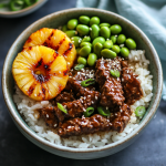 Hey there, foodie friends! Chef Jackson here, ready to share one of my all-time favorite recipes that’s practically summer in a bowl. Picture this: tender teriyaki beef, caramelized pineapple, and fluffy jasmine rice, all topped with crunchy edamame and a sprinkle of sesame seeds. It’s the kind of dish that tastes like golden hour dinners, sticky fingers, and laughter around the table. Whether you’re meal-prepping for the week or hosting a laid-back BBQ, these bowls are your new secret weapon. Let’s fire up those skillets!