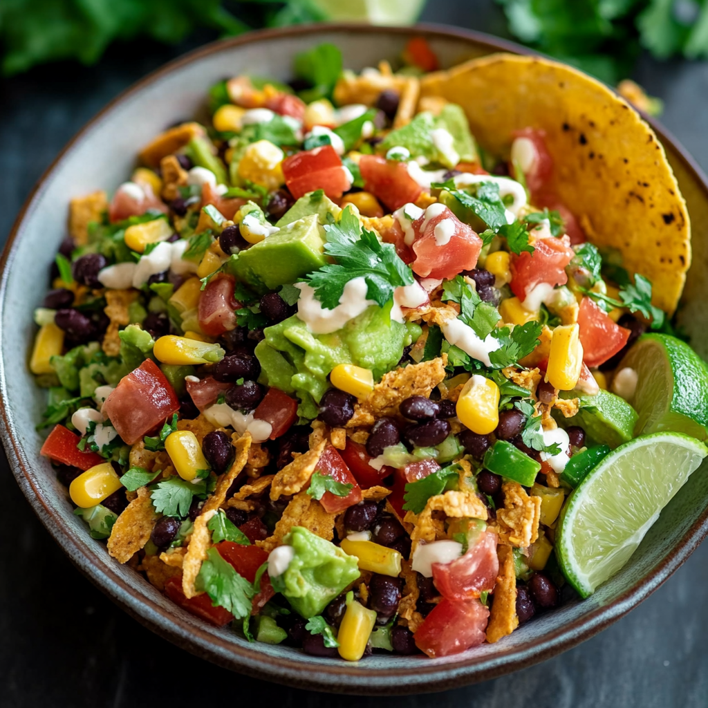 Hey there, salad skeptics and taco enthusiasts! Chef Jamie here, ready to revolutionize your lunch game with a dish that’s equal parts fresh, hearty, and ridiculously satisfying. Picture this: crispy lettuce cuddling up with creamy avocado, sweet corn doing the cha-cha with spicy black beans, and a tangy salsa dressing that ties everything together like the perfect bow on a food gift. This isn’t just a salad—it’s a fiesta waiting to happen in your mouth!