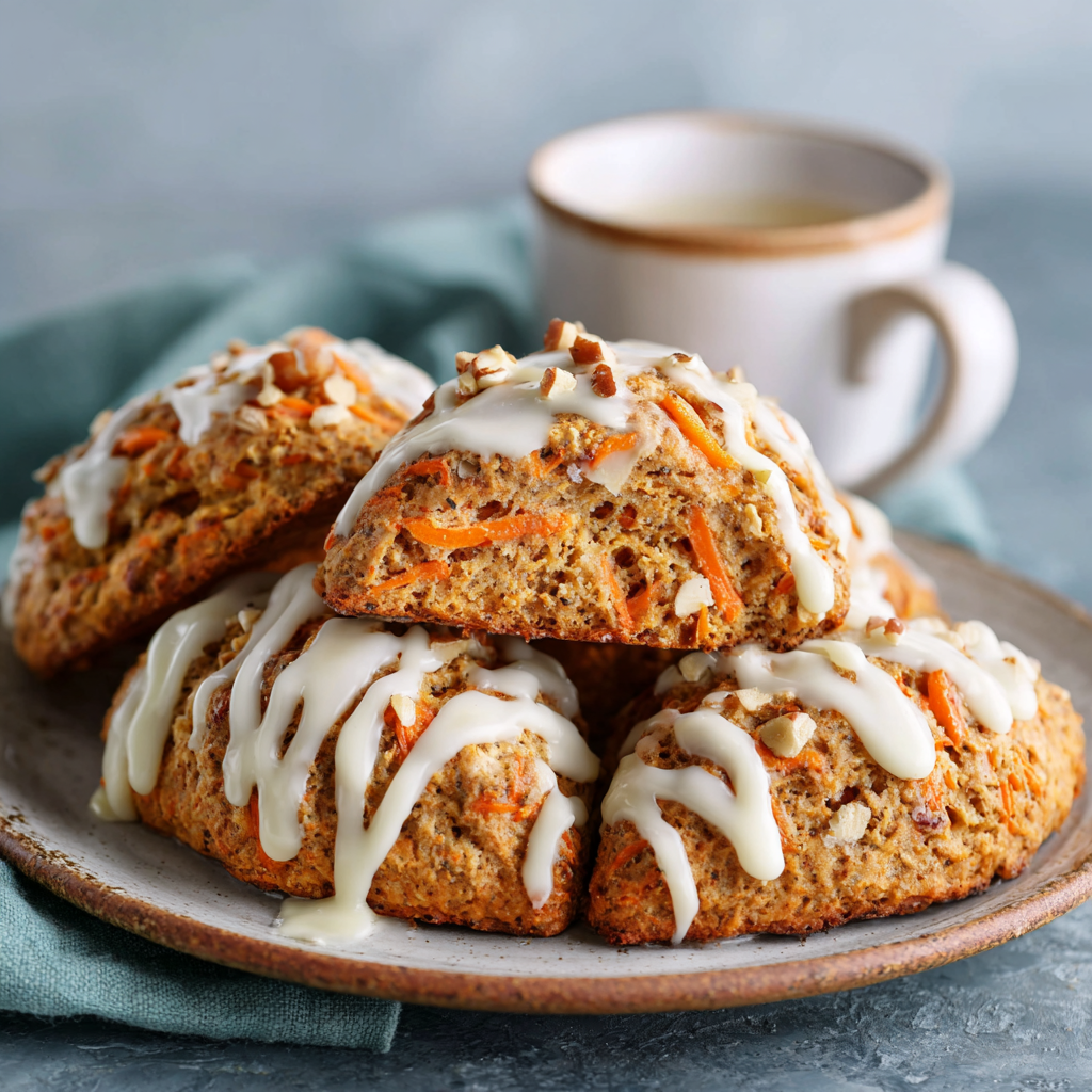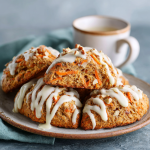 Everything you love about carrot cake—spiced crumb, sweet carrots, and creamy glaze—now in a golden, crunchy-topped scone. These bakery-style bites are tender inside, crisp on the edges, and perfect for cozy tea times or café-style mornings at home.
