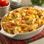 This pasta bake delivers Tex‑Mex flair with minimal fuss. With chicken simmered in a rich, cheesy sauce and zippy Rotel tomatoes, it’s comfort food made easy. Prepped quickly, baked to bubbling perfection—who’s ready for that cheesy pull?