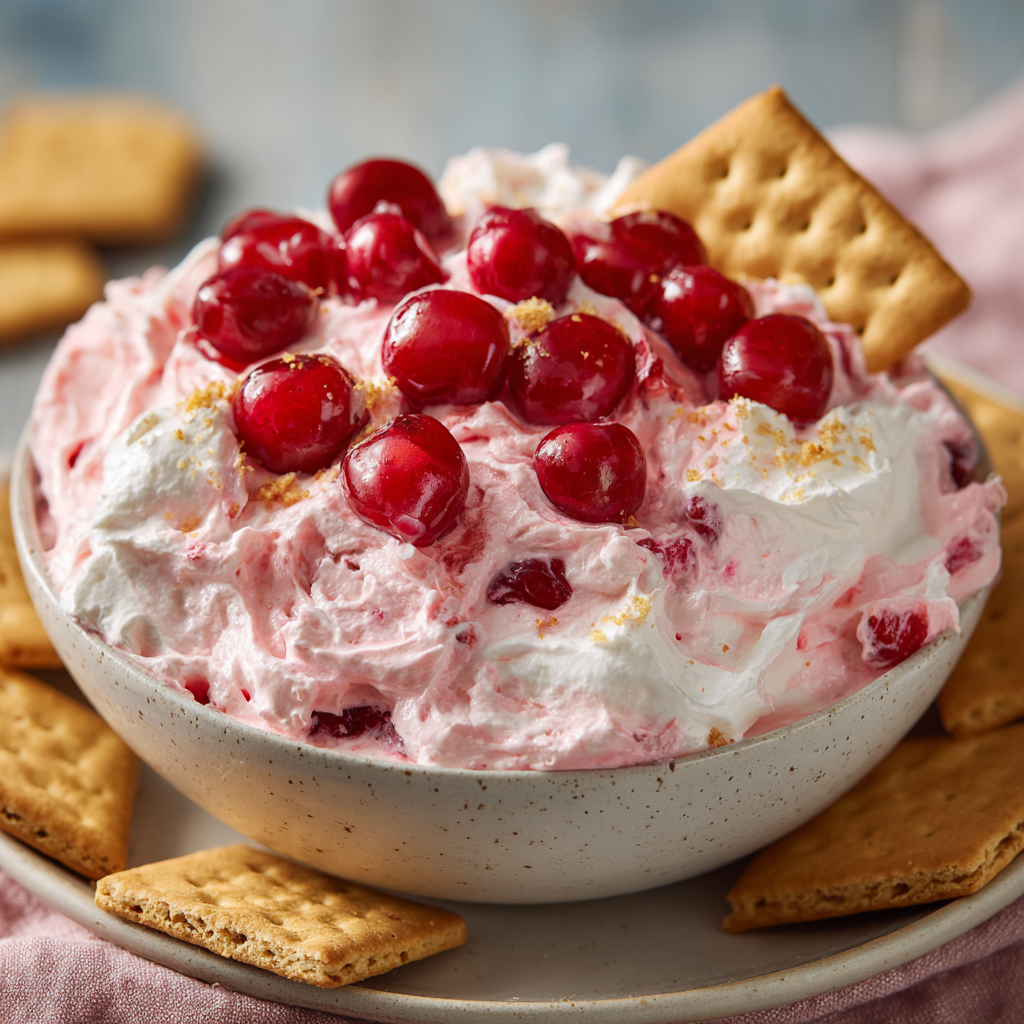 This dip always takes me straight back to my Aunt Betty’s screened porch in Georgia, summer of ’08. Humidity thick enough to swim in, cicadas singing backup, and Aunt Betty declaring, “Jackson, honey, fetch me that blue bowl!” She proceeded to dump cream cheese, fluff, and Cool Whip together with the kind of reckless joy only Southern grandmas possess. No recipe, just vibes. She slopped it into a dish, poured cherry pie filling over the top like she was painting a masterpiece, and thrust a box of graham crackers at us kids. What followed was pure, sticky chaos. We double-dipped, we laughed till lemonade came out our noses, and I ended up with cherry juice smeared clear across my forehead. That messy, joyful abandon? That’s the soul of this dip. It’s not about perfection; it’s about gathering, giggling, and getting deliciously messy together. Every time I make it, I taste summer freedom and Aunt Betty’s wink. Now, let’s recreate that magic (maybe slightly less messily!).