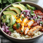 This recipe brings the warmth of a classic enchilada right into a wholesome bowl—perfect for when you’re craving comfort but want to keep things light. Inspired by family dinners and the bold, savory flavors of Mexican cuisine, these bowls are full of spice, texture, and fresh toppings. Each bite is a balance of hearty chicken, creamy avocado, and melty cheese—all without the carbs of traditional rice.