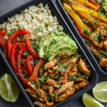Spicy, vibrant, and packed with smoky-sweet flavor, these Chicken Fajita Meal Prep Bowls bring sizzling Tex-Mex energy to your weekday lunches. With tender chicken, colorful peppers, fluffy cilantro-lime quinoa, and fresh toppings, every bowl is a fiesta in itself—minus the mess.