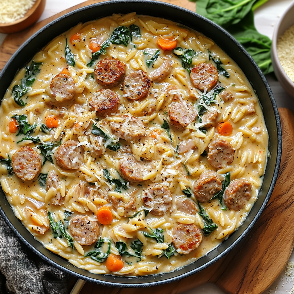 Okay, story time! When I was a broke culinary student, my tiny apartment kitchen was basically a closet with a hotplate. One icy Tuesday, my roommate (shoutout to Dave, the human garbage disposal) stumbled in, soaked and shivering. We were starving, but all we had was half a pack of chicken sausage, sad spinach, and a lonely box of orzo. Desperation breeds genius, friends. I threw it all in a skillet with broth and a splash of cream from my coffee stash. Ten minutes later? Dave took one bite, did a happy dance, and declared it “better than ramen.” That scrappy little experiment became our weekly ritual—fueling late-night study sessions and endless debates about whether cilantro tastes like soap (it does, fight me). Every time I make this now, I taste resilience, friendship, and the magic of making something glorious out of nothing. Food memories? They’re the best kind.