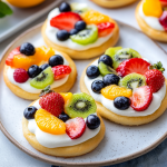 Mini Fruit Pizza Cookies aren’t just a dessert—they’re a full sensory experience. The soft cookie, the creamy frosting, the juicy burst of fresh fruit… every bite is a balance of flavor and texture, perfect for hot summer days or any time you want something light and refreshing.