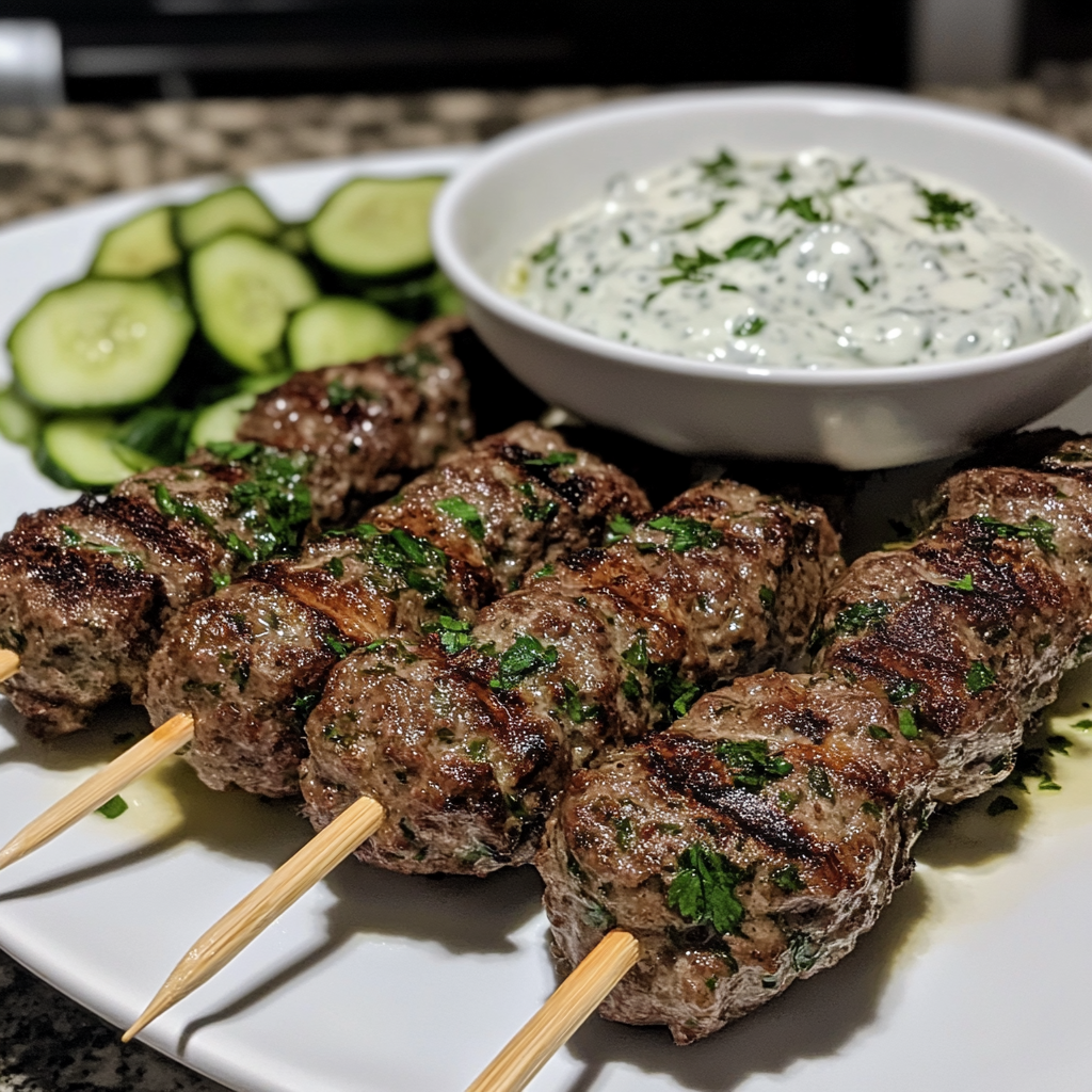 🔥 Grilled Beef Kofta Skewers with Tzatziki: Your New Summer Obsession
