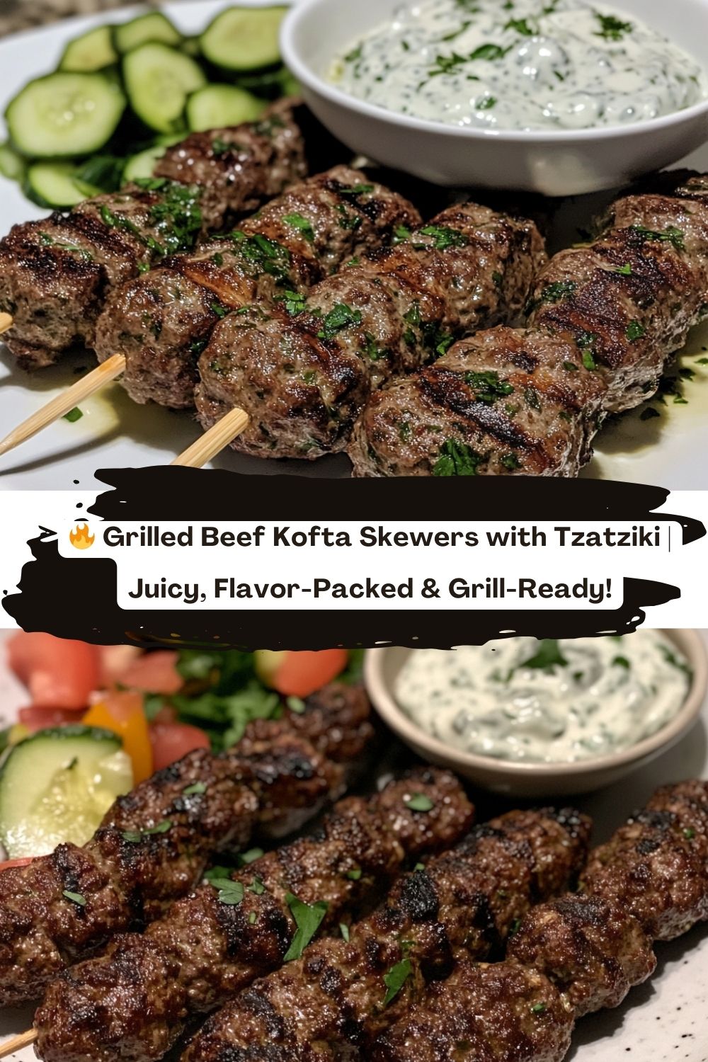 Pin Title: Grilled Beef Kofta Skewers with Tzatziki | Easy Summer Grilling Recipe