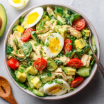 This creamy, zesty salad is loaded with protein and heart-healthy fats—thanks to juicy chicken, creamy avocado, and a hard-boiled egg. With crunchy veggies and a tangy dressing, it’s satisfying, fresh, and perfect for lunch or post-workout fuel.