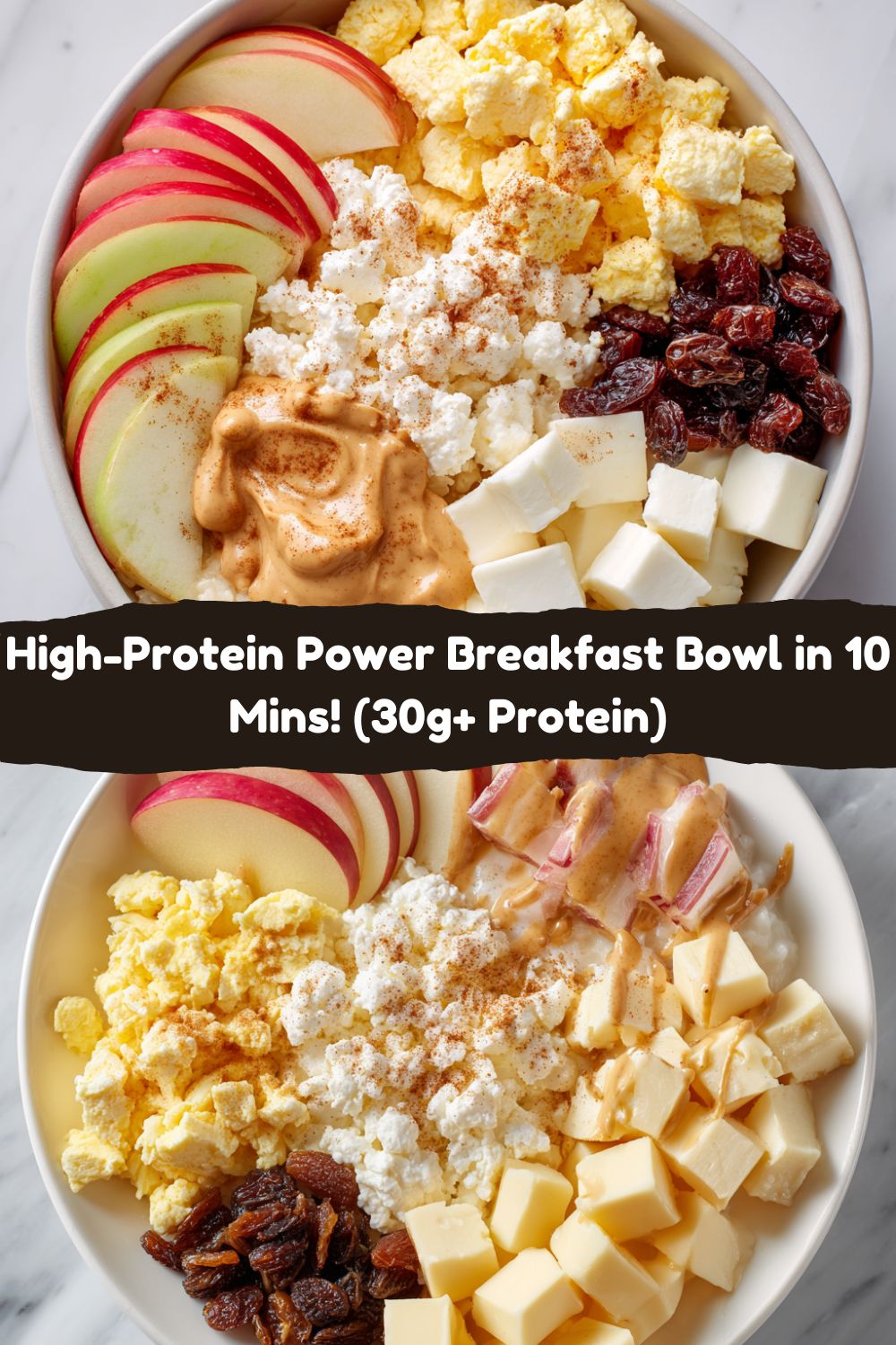 This bowl is a texture party, so presentation is easy-peasy! Use a wide, shallow bowl so every glorious section shines. Let the colors pop—golden eggs, white cheese, red apples, dark raisins. No need to fuss! Grab a big spoon (or go wild with a spork!) and serve it immediately while the eggs are warm and the cheese is cool. Want to impress? Garnish with an extra sprinkle of cinnamon or a tiny drizzle of PB. Pair it with black coffee, a green smoothie, or just pure, unadulterated enthusiasm for the day ahead!