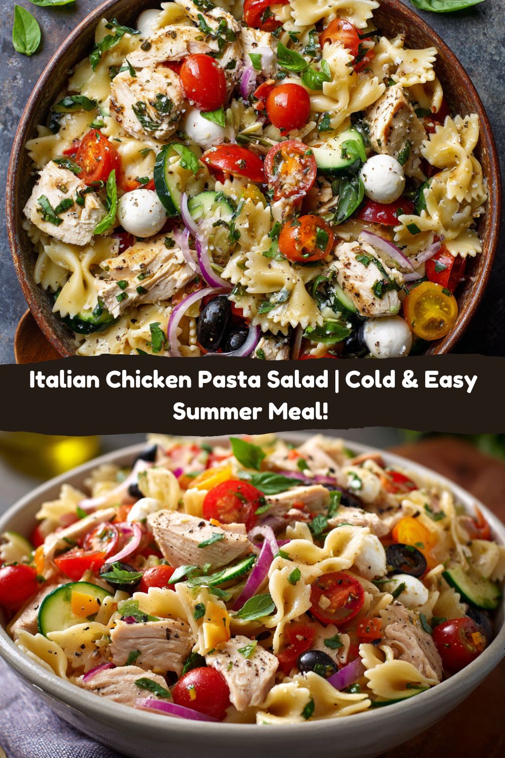 Let’s be real—when the temps rise and your motivation to cook drops, this Italian Chicken Pasta Salad is the hero your taste buds (and your sweat glands) deserve. It’s cool, crisp, juicy, herby, and straight-up delicious. The kind of dish that tastes like you tried—when really, you just tossed a bunch of tasty things in a bowl and gave it a quick zhuzh. ✨