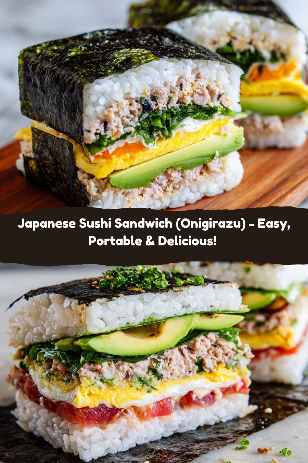 This sushi sandwich (Onigirazu) is a delicious twist on traditional sushi—layered with seasoned rice, creamy tuna, egg, and avocado, then wrapped in nori. It’s compact, satisfying, and great for lunch on the go!