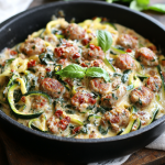 These Keto Creamy Tuscan Zucchini Noodles with Sausage aren’t just another low-carb dinner—they’re a full-on flavor experience. Think soul-soothing comfort, weeknight ease, and Italian-inspired richness all wrapped into one glorious skillet. Whether you’re deep into your keto journey or just craving something cozy without the crash, this dish delivers big-time. You’ve got silky cream, bold sausage, briny sun-dried tomatoes, and zoodles that actually hold their own—no noodle envy here.
