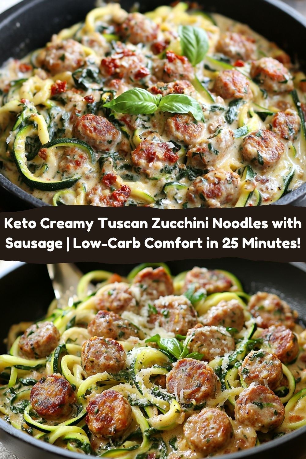 Hey friends, Jackson here from Food Meld! You know that magical moment when you walk into a kitchen swirling with the sizzle of garlic, the herby perfume of Italian seasoning, and the promise of something seriously delicious? That’s exactly where we’re headed today. Picture this: plump sausage coins bronzed to perfection, tangled in vibrant zucchini noodles, all swimming in a luxuriously creamy Parmesan sauce studded with sun-dried tomatoes and emerald spinach. It’s like a hug for your taste buds – rich, comforting, and packed with bold flavor. And here’s the kicker: it’s completely keto-friendly and ready in about 25 minutes flat. No fancy skills needed, just a skillet, a hungry spirit, and that awesome “what if we tried this?” energy I love. Whether you’re keto-curious, battling dinnertime boredom, or just craving something soul-satisfyingly good, this Tuscan-inspired dish is your golden ticket. Let’s turn up the heat and cook something unforgettable together!