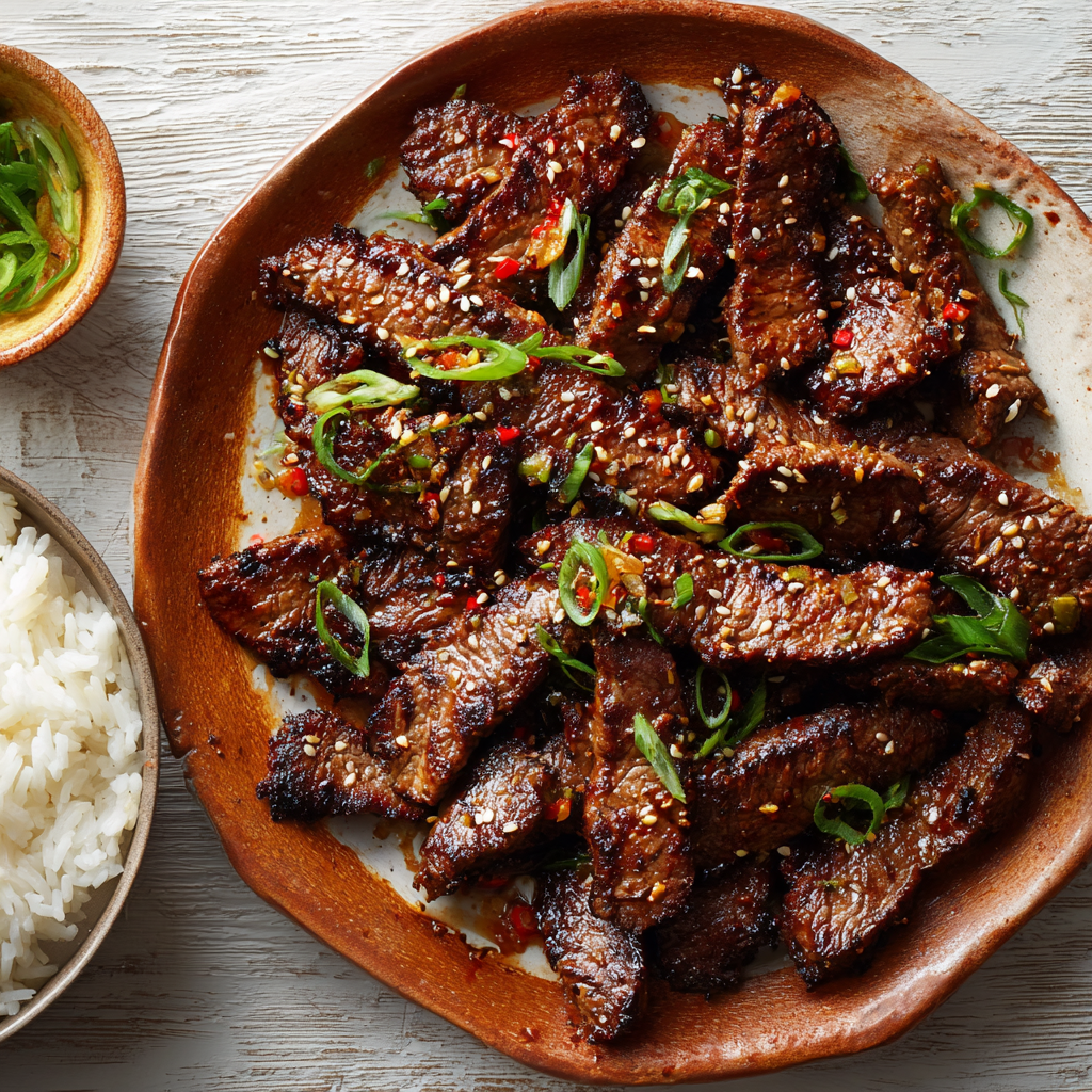 At the end of the day, Korean Beef Bulgogi isn’t just a recipe—it’s a celebration of bold flavor, tender textures, and joyful cooking. It’s that sizzle in the skillet, the caramelized crust, and the way your kitchen smells like something really special is happening. Whether you’re serving it in lettuce wraps with kimchi, piling it over steamy rice, or sneaking a bite straight from the pan (we’ve all done it!), bulgogi delivers that soul-satisfying “wow” moment every single time.