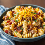 If there’s one thing I’ve learned from years of kitchen experimenting and accidental recipe wins, it’s this: some of the best meals are born not from strict plans, but from craving, chaos, and curiosity. This Loaded Bacon Cheeseburger Pasta is the poster child for that delicious truth. It’s messy in the best way. Familiar, yet totally new. And it’s the kind of dinner that makes people stop mid-bite and say, “Wait… this is amazing.”