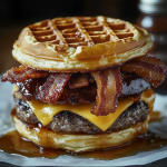 I’ll never forget those lazy Sunday mornings at my grandpa’s farmhouse. He’d sneak into the kitchen at dawn, whistling off-key, and whip up breakfasts that felt like magic. One day, he stacked leftover waffles, bacon, and a burger patty from the night before—and history was made. The first bite was chaos: sweet, salty, crunchy, juicy… and absolutely unforgettable. Today, I’m sharing my spin on his legendary creation. No fancy skills required—just a love for bold flavors and a willingness to get a little maple syrup on your shirt. Let’s do this!