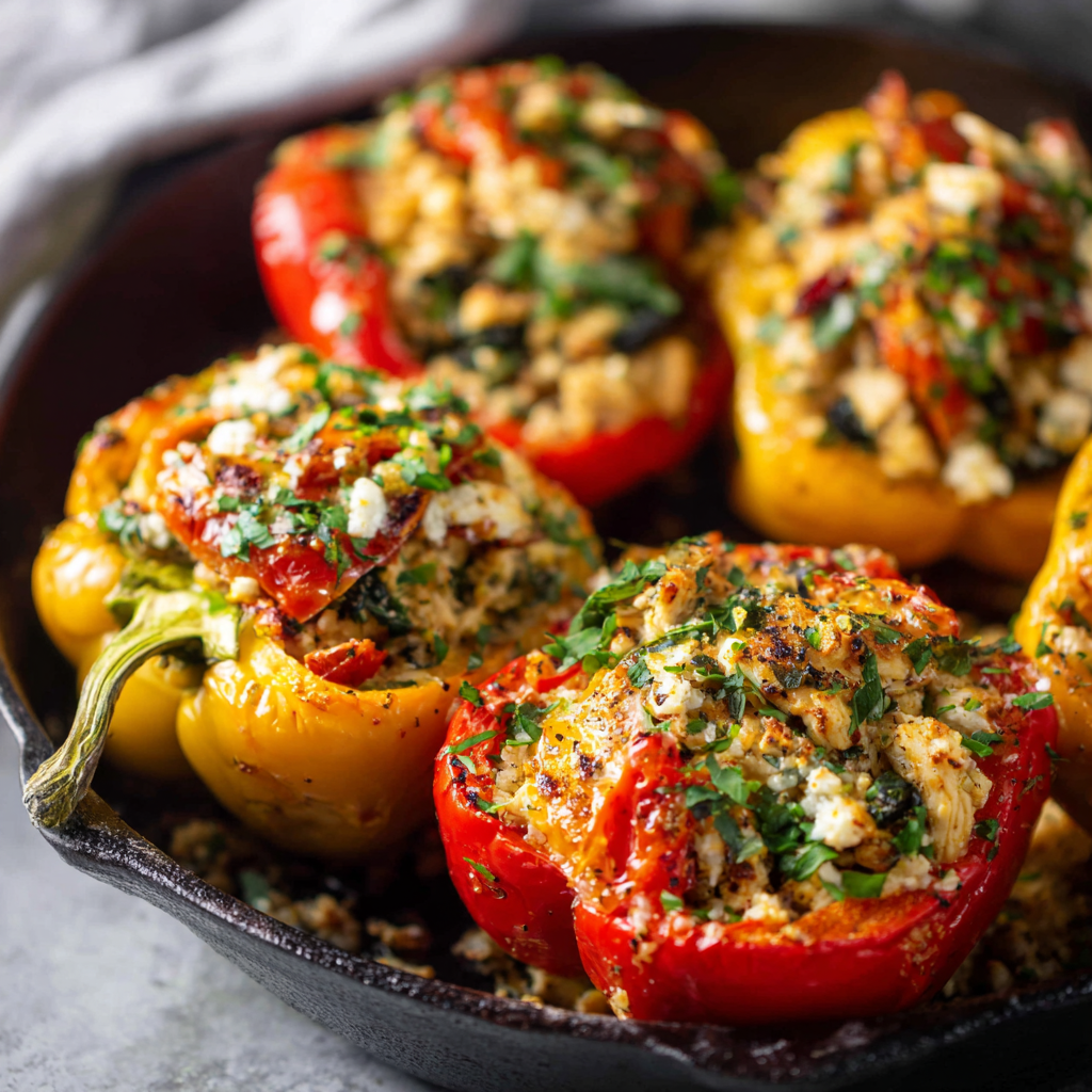 This recipe brings the warmth of the Mediterranean right into your kitchen. Juicy bell peppers are filled with herbed chicken, veggies, and bright Mediterranean flavors. It’s a colorful, satisfying meal that’s as nourishing as it is delicious—and perfect for prepping ahead or enjoying fresh out of the oven.