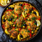 Packed with tender chicken, fragrant rice, and savory olives, this dish is infused with paprika and saffron for rich color and depth. A comforting, flavor-packed meal that’s easy enough for weeknights and impressive enough for guests.