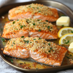 This recipe always takes me back to a tiny dockside eatery in Savannah where I first fell hard for crispy-topped seafood. I was 19, road-tripping with my college buddies, and we stumbled into this hole-in-the-wall spot smelling like heaven and salt air. The chef – a guy named Hector with forearms like tree trunks – slid a parchment-lined plate toward us: wild-caught salmon crowned with this crackly, golden crust. One bite and we all fell silent (a miracle with hungry college guys). That crunch! That juicy interior! Hector saw our stunned faces and just winked: “Secret’s in the press-and-stick, kids.” Turns out, his “secret” was simply pressing the topping firmly so it became part of the fish. I’ve carried that lesson ever since. My version swaps his Cajun spices for garlic-herb goodness, but every time I make it, I’m back on that rickety dock, tasting that first magical bite. Food memories? That’s the good stuff right there.