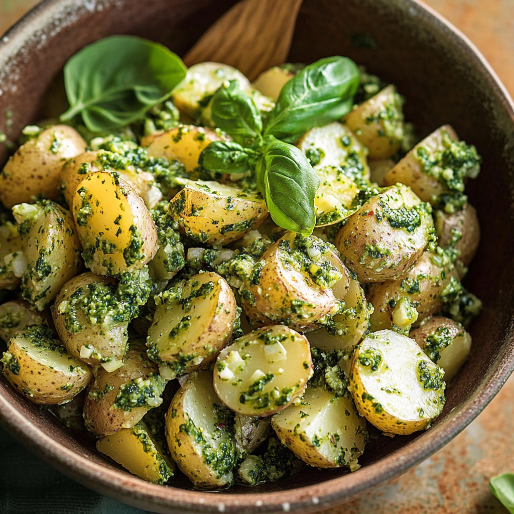 Picture this: It’s a golden summer afternoon, and you’re sprawled on a checkered picnic blanket with friends. The grill’s smoking, the lemonade’s flowing, and there’s a bowl of potato salad sitting front and center. But this isn’t your grandma’s mayo-heavy version—oh no. This is Pesto Potato Salad, a vibrant, garlicky, lemon-kissed masterpiece that’s about to become your new warm-weather obsession.