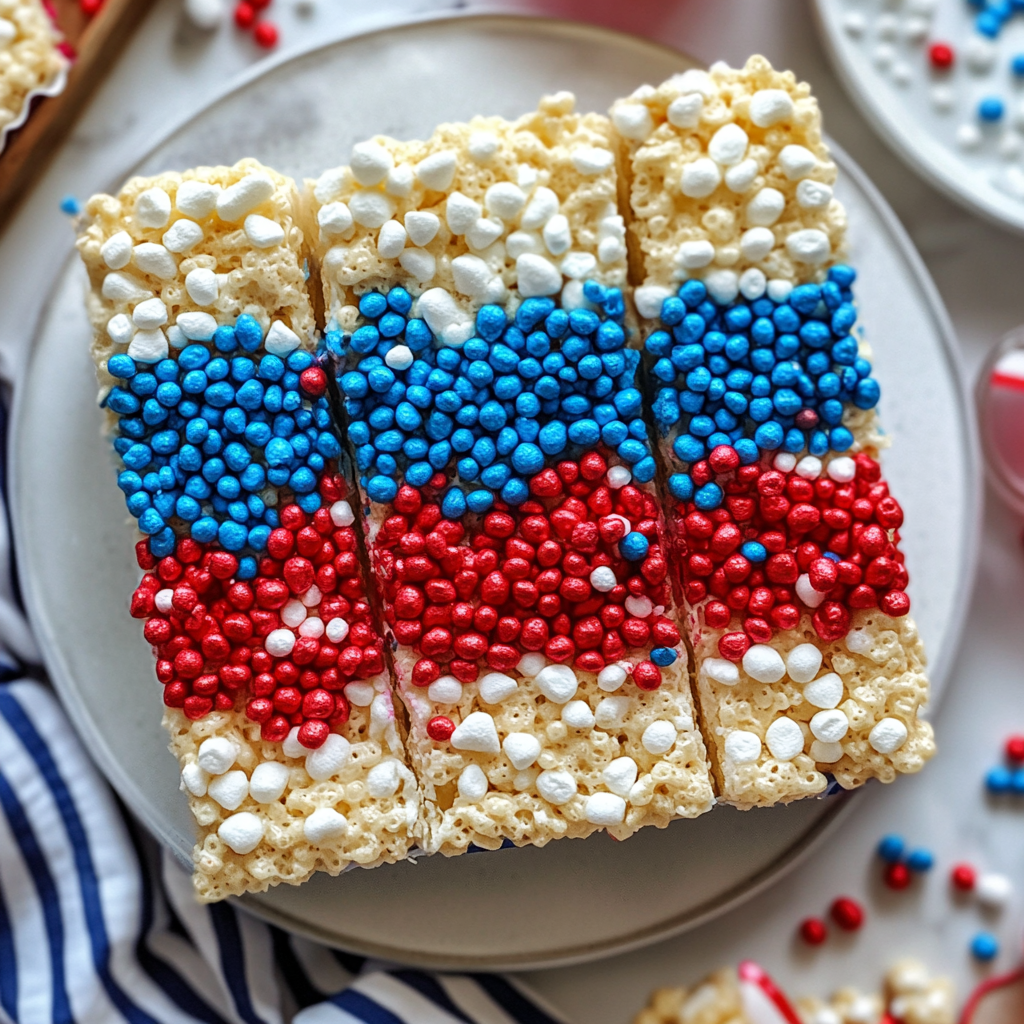 Red, White & Blue Firecracker Rice Krispie Treats aren’t just a dessert—they’re an experience. Every crackle, pop, and colorful bite brings back memories of barefoot summer nights, sticky fingers, and laughter echoing over backyard fences. Whether you’re whipping up a batch with the kiddos, surprising friends at the BBQ, or just channeling your inner child, this treat delivers a triple threat of fun, flavor, and festive flair.