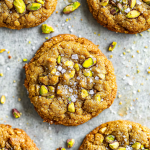 These cookies remind me of sitting on the porch with my granddad, cracking pistachios and drizzling honey on toast. That combo stuck with me, and now it shines in this chewy, golden cookie. They’re soft in the center, crisp on the edges, and topped with flaky salt for the perfect finish. A little fancy, a lot of heart.