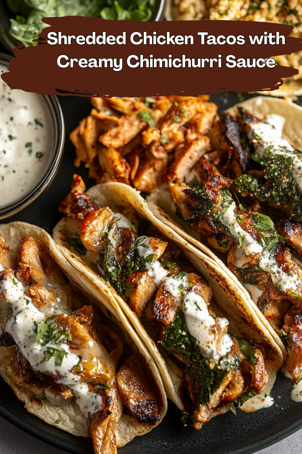 🌮 Shredded Chicken Tacos with Creamy Chimichurri Sauce: Your New Taco Night Obsession