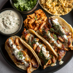 Stack ’em high on a platter with lime wedges and extra sauce for dipping. Pair with icy-cold Mexican beer or a mango margarita. For sides? Keep it simple: charred corn or chips with guac. No fancy plates needed—these tacos shine on paper towels!