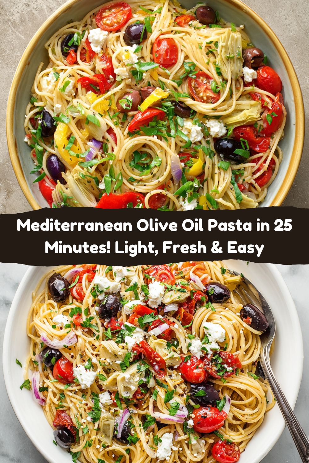 Picture this: golden sunshine warming your shoulders, the scent of salty sea air and wild herbs, and a simple plate of pasta that tastes like pure, uncomplicated joy. That’s the feeling I chase every time I make this Simple Mediterranean Olive Oil Pasta. It’s not just dinner; it’s a 25-minute vacation for your taste buds. Forget complicated sauces or hours at the stove – this dish is all about letting vibrant, fresh ingredients sing. If you’ve ever stared into your pantry wondering how to turn basic staples into something spectacular, this is your moment. I’m Jackson from Food Meld, and I live for recipes like this: bold, comforting, packed with flavor, and shockingly easy. This pasta is my weeknight superhero, my potluck showstopper, and my go-to when I need a burst of Mediterranean sunshine on a cloudy day. We’re talking al dente spaghetti tangled with juicy tomatoes, briny olives and artichokes, a garlicky olive oil hug, and a confetti of fresh herbs and tangy feta. It’s light yet satisfying, elegant but totally approachable. Whether you’re a kitchen newbie or a seasoned pro, this recipe proves that unforgettable food doesn’t need to be fussy. So grab your favorite skillet, crank up some tunes (maybe a little Greek bouzouki?), and let’s cook something awesome together. Get ready for flavor that pops and clean plates all around!