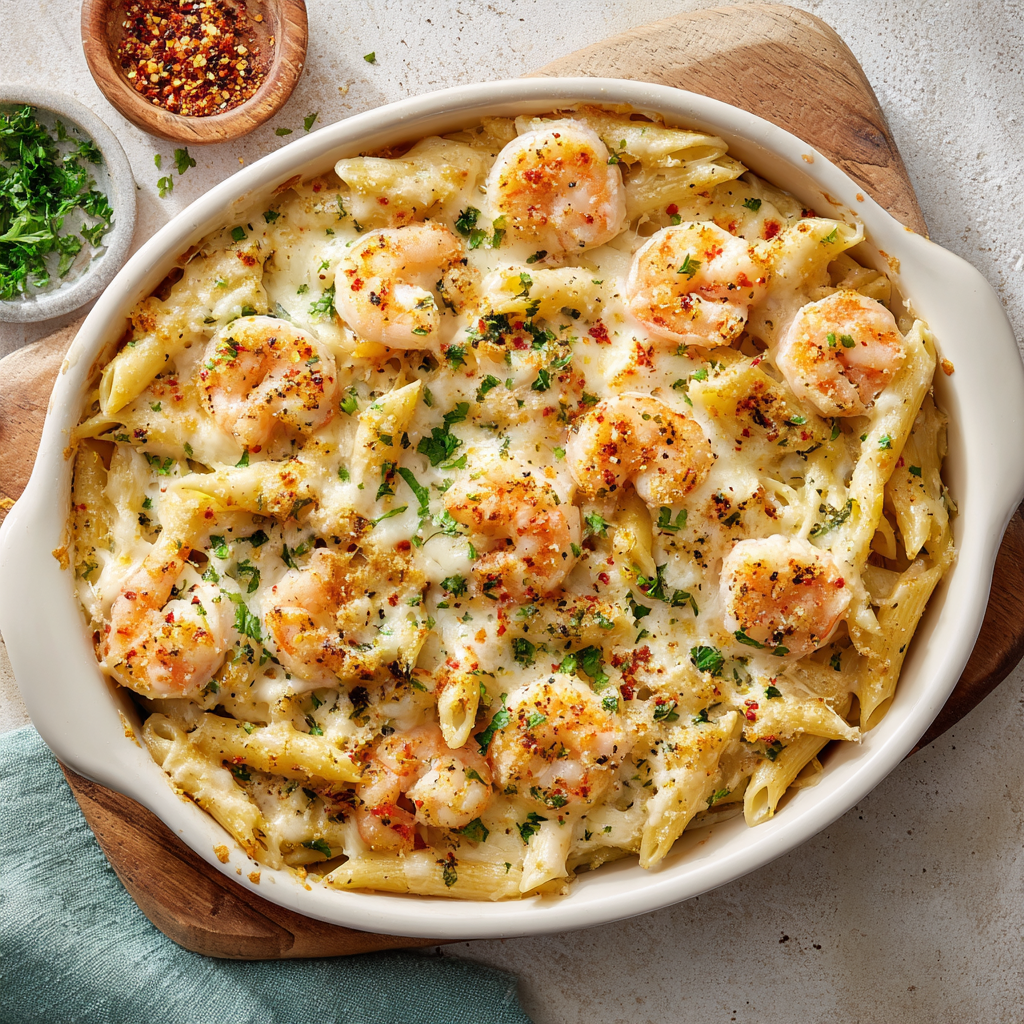 It’s creamy, garlicky, cheesy, and loaded with protein-packed shrimp that make each forkful feel like a reward. Whether you’re feeding a hungry crew, meal-prepping for the week, or just craving a little dinnertime magic on a Tuesday, this bake delivers big on flavor and feel-good satisfaction. Plus, with its easy ingredient swaps and flavor flexibility, it’s built for real life—messy kitchens, picky eaters, and all.