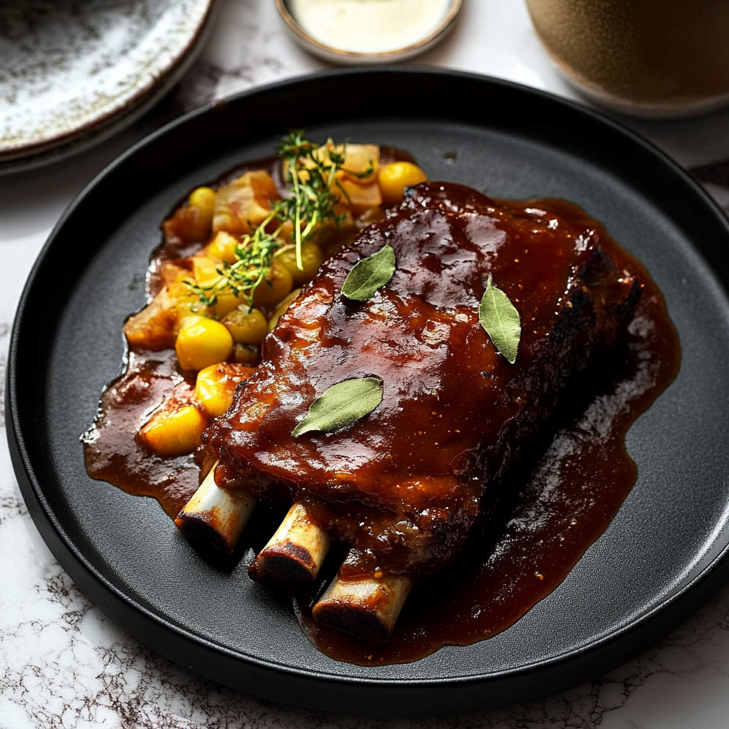Pile those saucy ribs on a rustic wooden board with a side of creamy polenta or garlic mashed potatoes. Drizzle extra sauce like Jackson Pollock (artistic splatters = instant gourmet points). Garnish with pickled red onions or fresh chives for color. And hey—keep napkins handy. Things are about to get gloriously messy. 🤤