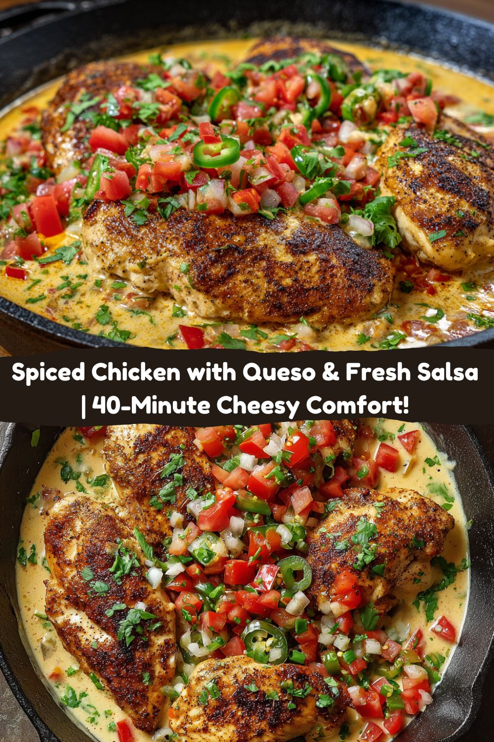 Hey friends, Jackson here from Food Meld! Ever have one of those days where you crave something cheesy, spicy, and soul-warming—but don’t wanna babysit a complicated recipe? That’s exactly why I created this Spiced Chicken with Queso Sauce & Fresh Tomato-Jalapeño Salsa. Picture this: juicy chicken rubbed with smoky spices, seared golden in a trusty skillet, then smothered in velvety queso that hugs every nook. The kicker? A bright, crunchy salsa made with ripe tomatoes and just enough jalapeño to make things interesting. It’s like your favorite nachos decided to level up and become dinner royalty. And here’s the best part: we’re pulling this together in 40 minutes flat. No fancy skills required—just big flavor, zero fuss. Ready to turn your kitchen into a flavor party? Let’s dive in!