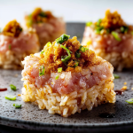 Picture this: It’s Friday night. You’re curled up on the couch, queuing up your favorite movie, and suddenly—your stomach growls. Not just any growl, though. This is a “I-need-something-crunchy-creamy-spicy-and-downright-decadent” emergency. Enter: spicy tuna crispy rice bites. Imagine golden, crackly rice cakes topped with silky avocado and a fiery tuna mix that’ll make your taste buds do a happy dance. These little guys are like sushi’s rebellious cousin who shows up to the party with extra swagger. 🕺