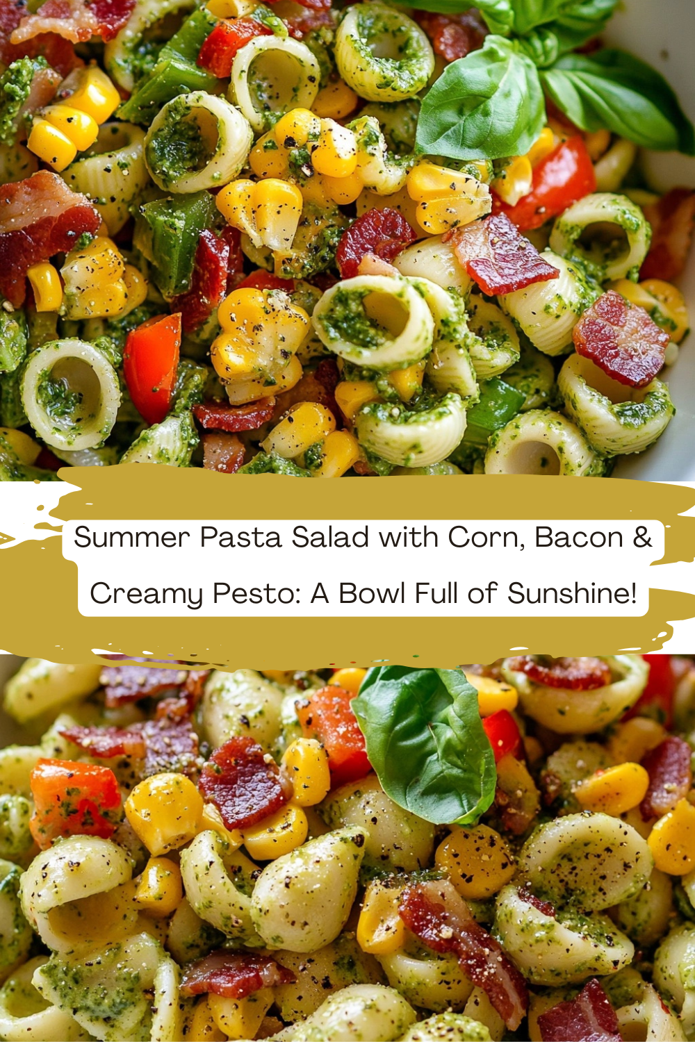 Summer Pasta Salad with Corn, Bacon & Creamy Pesto: A Bowl Full of Sunshine! 🥓🍝🌞