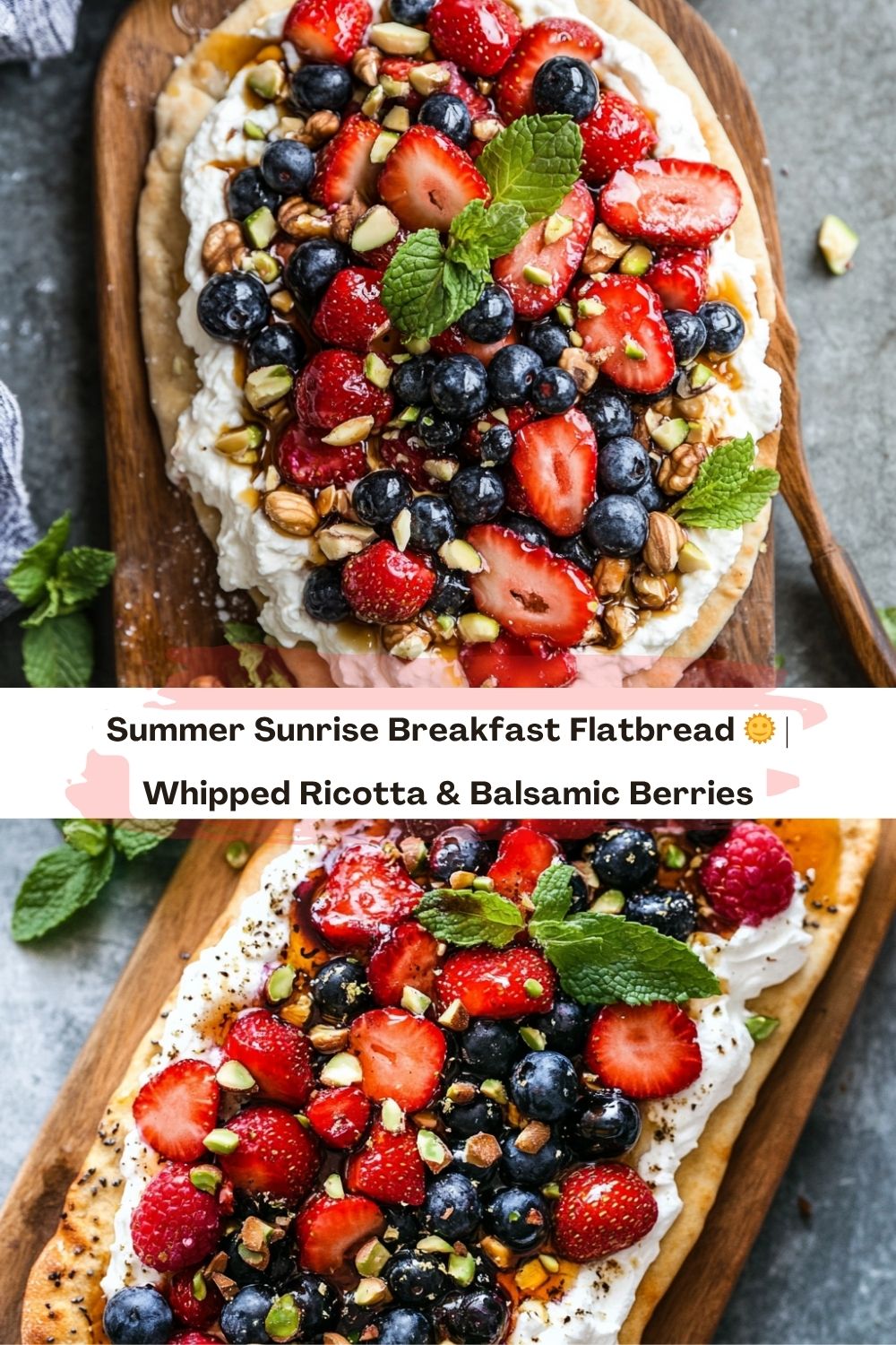 🍓 Summer Sunrise Breakfast Flatbread with Whipped Ricotta & Balsamic Berries ☀️