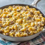 This isn’t just mac and cheese—it’s a full-blown comfort bomb. Ground beef seasoned with ranch mix, blended into gooey cheddar and cream cheese, then folded into tender macaroni. It’s creamy, savory, and baked to golden perfection. A cozy dinner that comes together fast and hits all the right notes.
