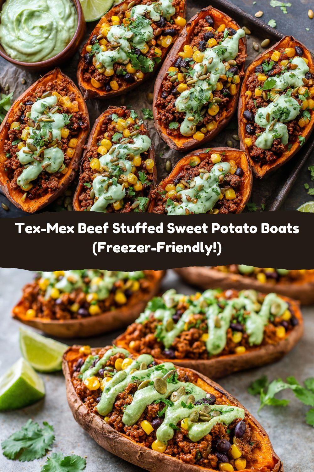 Clean eating never looked (or tasted) this bold. These Tex-Mex Beef Stuffed Sweet Potato Boats are packed with savory taco-spiced beef and topped with zesty avocado crema, corn, and crunchy pepitas. Wrapped and ready for the freezer, they’re perfect for vibrant, grab-and-go meals that don’t skimp on flavor.